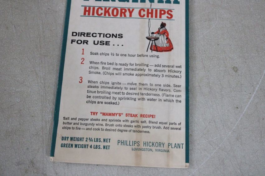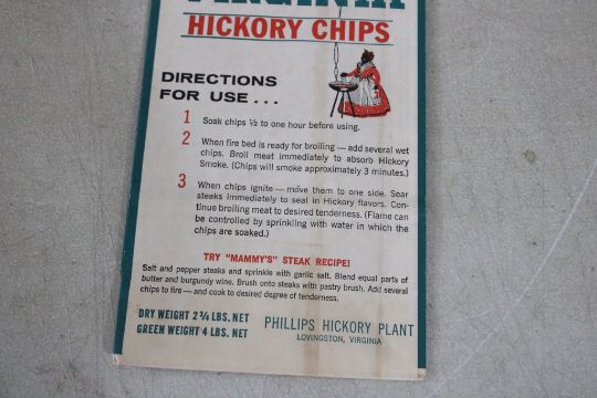 Ole Virginia Hickory Chips New/Old Stock Bag - Black Americana New/Old Stock Ole Virginia Hickory Chips Unused Bag as pictured. Please ask questions and read terms & conditions before bidding.