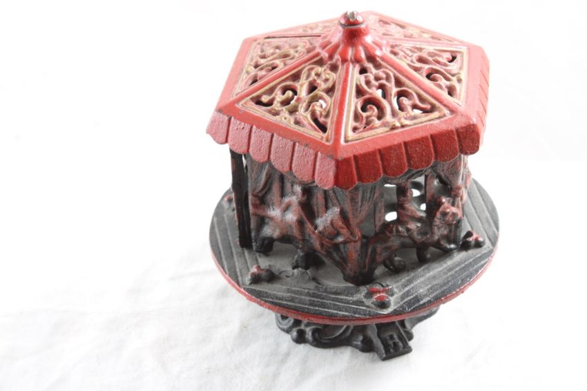 Cast Iron Carousel Bank 5" Tall - As pictured. Please ask questions and read terms & conditions before bidding.