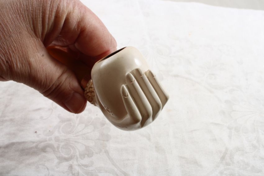 Hand Carved Meerschaum Pipe Hand Held Bowl - Measures 6 1/2" Long and Bowl measures 2" Tall as pictured. Please ask questions and read terms & conditions before bidding.