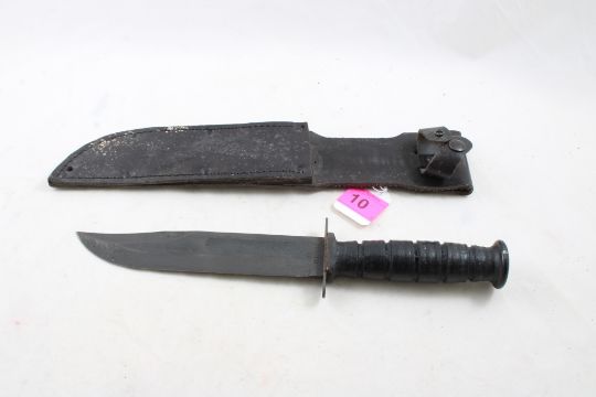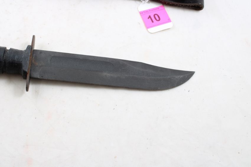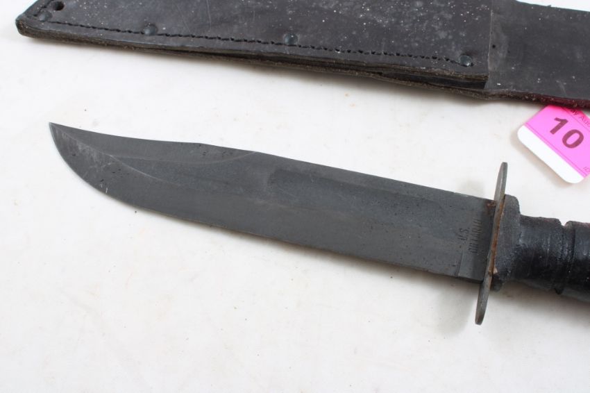 U S Ontario Fixed Blade Knife w/Leather Sheath - 7" Blade as pictured. Please ask questions and read terms & conditions before bidding.