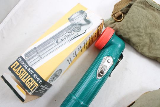 BSA Flashlight, Mess Kit, Personal Care Pouch - Vintage Boy Scout Items as pictured. Please ask questions and read terms & conditions before bidding.