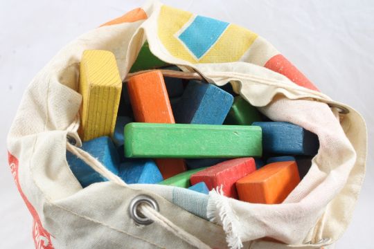 Playskool Duffel Bag of Colored Blocks #660 - As pictured. Please ask questions and read terms & conditions before bidding.