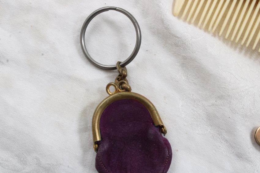 Flapper Whiting Davis Purse, Beaded Purse & More - 2 Pocket Knife Key Chains, 1 Coin Key Chain, Dresser Comb. All as pictured. Please ask questions and read terms & conditions before bidding.