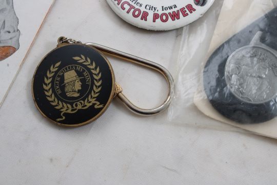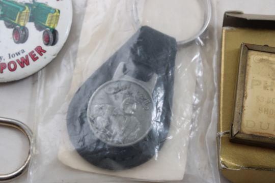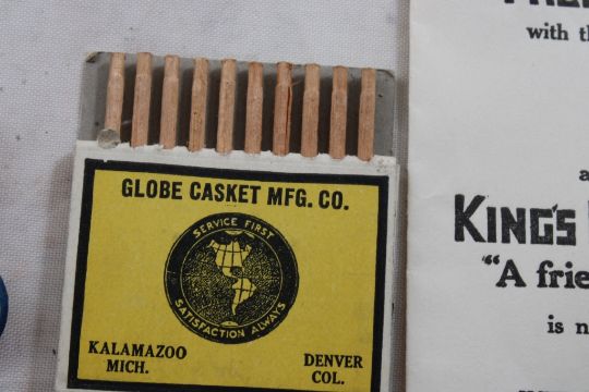 Advertising Key Chains, Match Sticks, Mirror, More - Beckley's Office Equipment Rochester Minn. Desk mirror, Morton's Salt Pencil Topper Clip, Globe Casket Mfg. Co. Match Sticks, King's Castle Flour Free Sample, Peachy Ribbon Cut Chewing Tobacco, Watkins Almanacs, Rawleighs Almanac, Phillips Shoes Duluth, Minn. & More as pictured. Please ask questions and read terms & conditions before bidding.