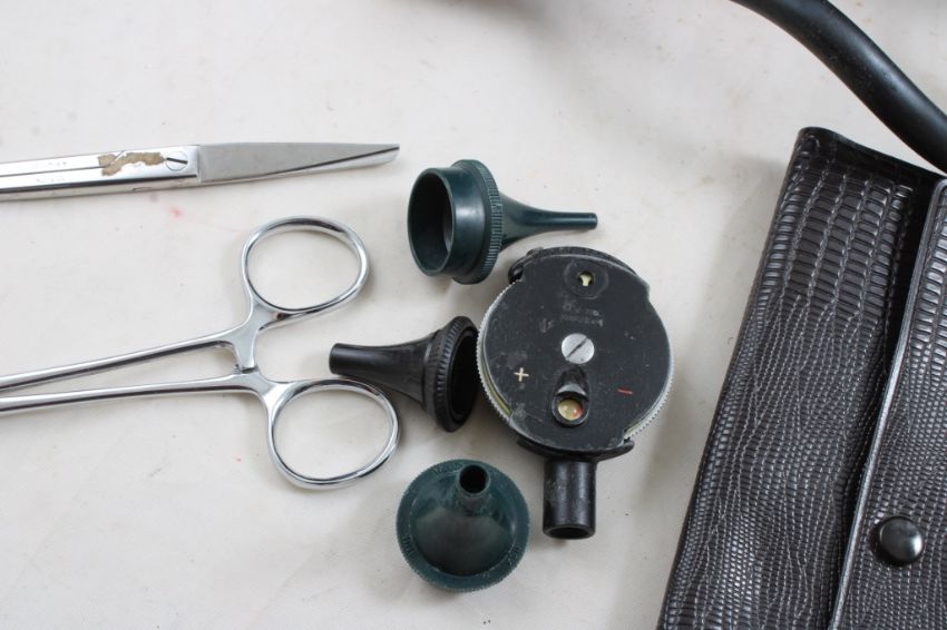 Dr RM Spiekerman Medical Bag & Instruments - Bag is marked HOMA and all instruments pictured are included. As pictured. Please ask questions and read terms & conditions before bidding.