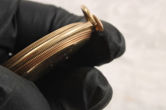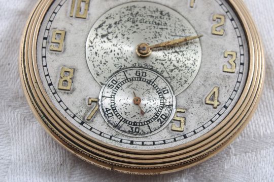 Waltham Chesterfield Pocket Watch 21J Running - Missing the hour hand & crystal. Face is scratched & I can't get the back off. As pictured. Please ask questions and read terms & conditions before bidding.