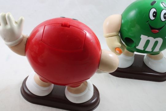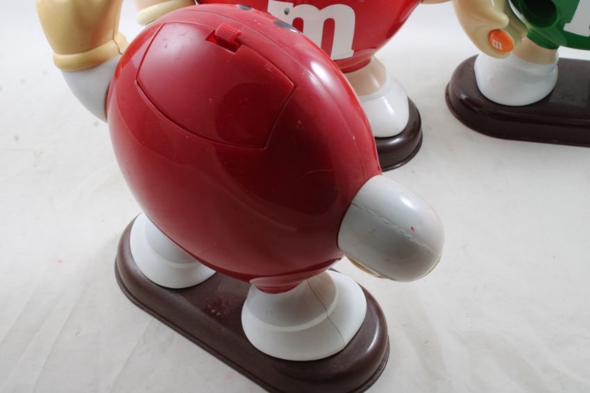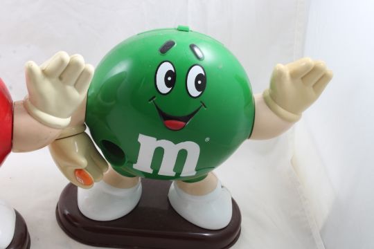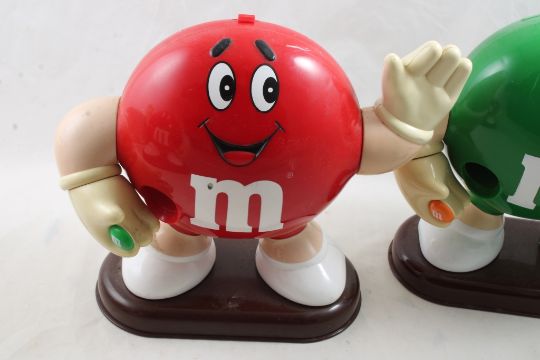 3 M&M Candy Dispensers - 2 Red & 1 Green M&M Figurine Candy Dispensers as pictured. Please ask questions and read terms & conditions before bidding.