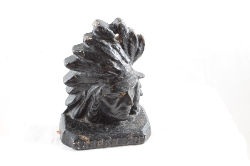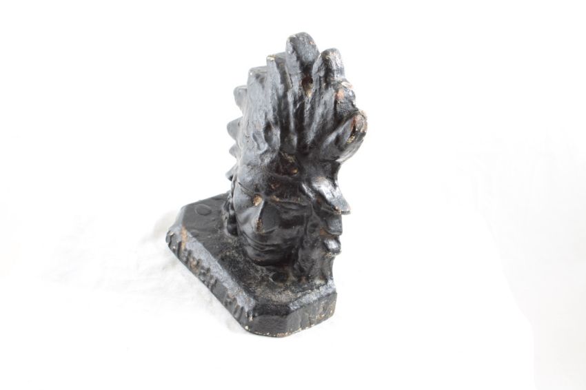 KASPER FOUNDRY NATIVE AMERICAN INDIAN BOOKEND - OR DOOR STOP THAT Measures 6 3/4" Tall Please ask questions and read terms & conditions before bidding.
