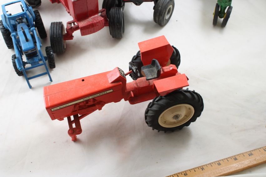 Diecast Tractor Lot John Deere, IH, Ford, Allis - Some may have damage or missing a wheel. All as pictured. Please ask questions and read terms & conditions before bidding.