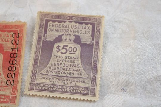 Motor Vehicle Stamps, Migratory Bird Stamps - Federal Use Tax on Motor Vehicles Stamps 1942, 1943 & 1945 and Migratory Duck Stamps as pictured. Please ask questions and read terms & conditions before bidding.