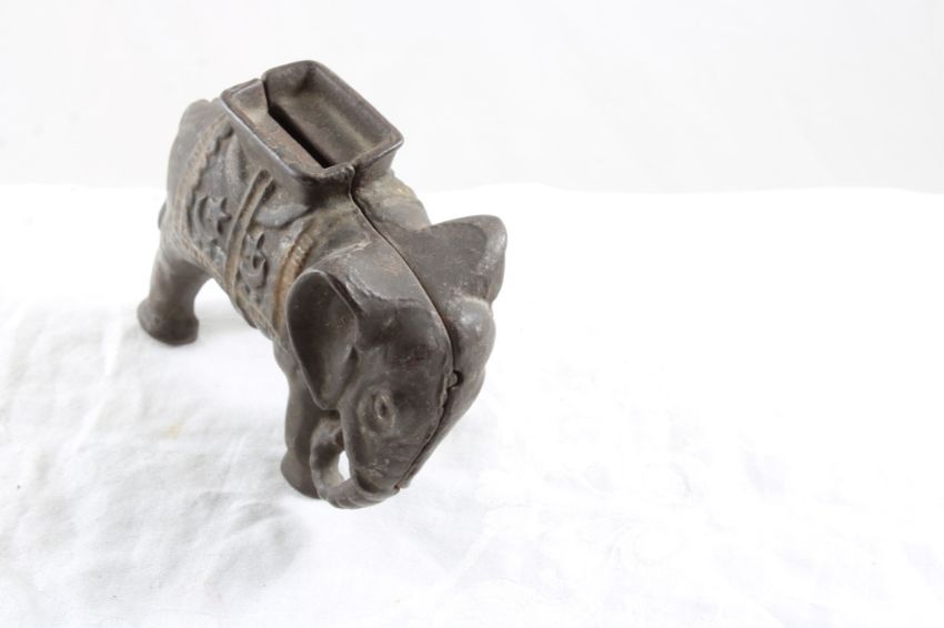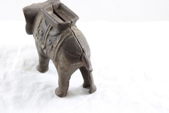 Cast Iron Elephant Bank - Measures 4 1/4" Long as pictured. Please ask questions and read terms & conditions before bidding.