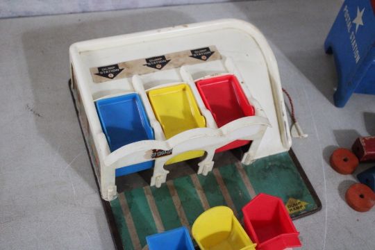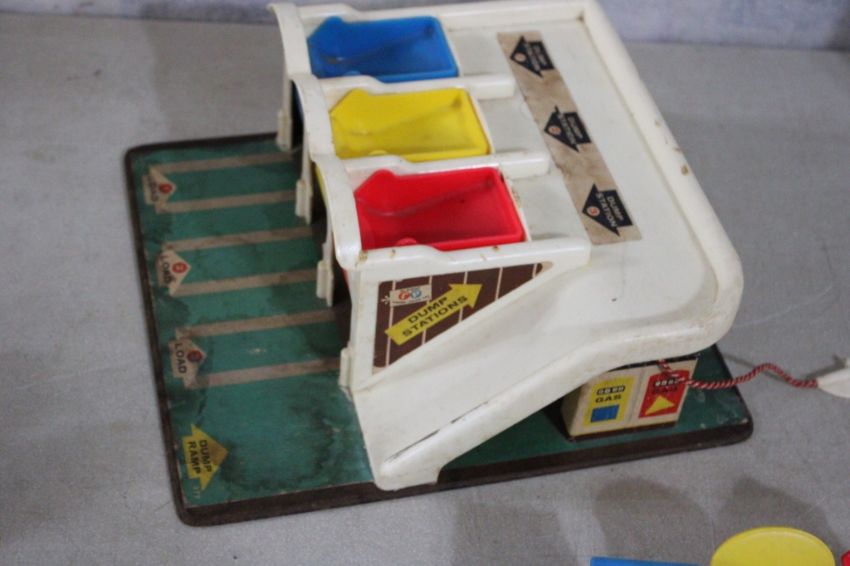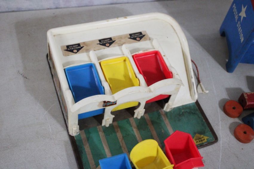 Vintage Fisher Price & Playskool Toys - Fisher Price Race Car Pull Toy & Dump Trucker's Play Set, Playskool Postal Station. As pictured. Please ask questions and read terms & conditions before bidding.