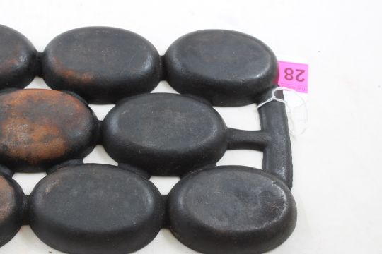 Civil War Era R&E Cast Iron Gem 11 Hole Pan - Patent Date April 5, 1858 Russell & Erwin Mfg. Co. as pictured. Please ask questions and read terms & conditions before bidding.