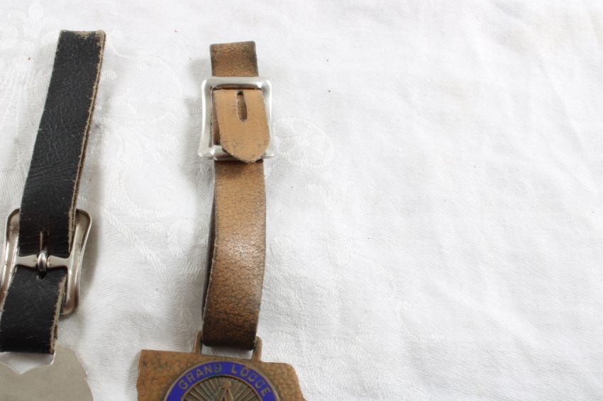 3 Fraternal Watch Fobs - Crow Elkhart Automobile Watch Fob, Legion of Honor Syria Watch Fob & 1927 Masonic Grand Lodge A.F. & A.M. of Iowa Watch Fob all as pictured. Please ask questions and read terms & conditions before bidding.