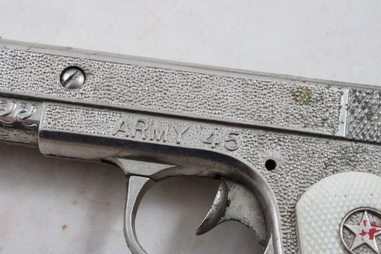 3 Vintage Toy Cap Guns Kilgore, Army 45, Texan Jr. - All Working as pictured. Please ask questions and read terms & conditions before bidding.