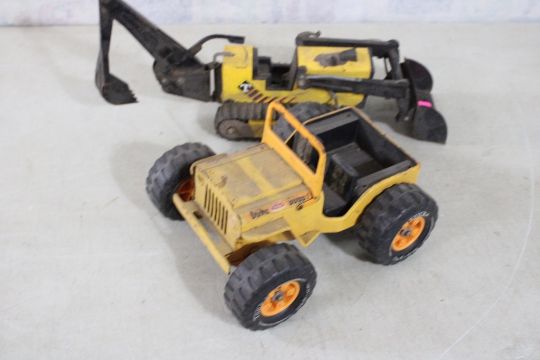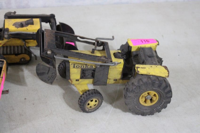3 Tonka Toys Dune Buggy, Loader, Backhoe Loader - As pictured. Please ask questions and read terms & conditions before bidding.