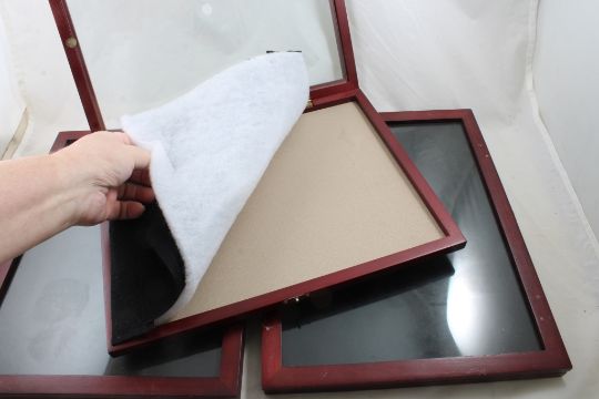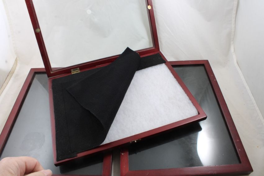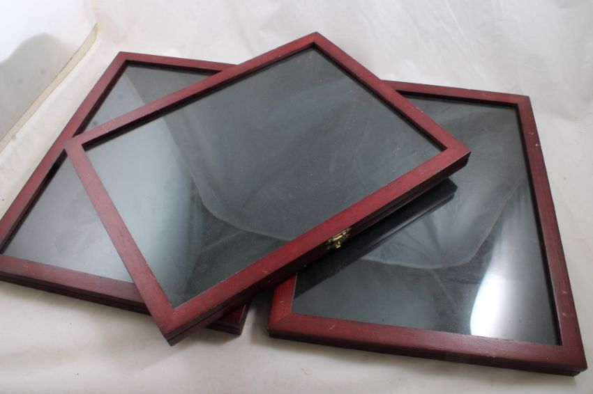 3 Front Opening Display Cases 14" x 11" - These can be hung on the wall or used as display cases. As pictured. Please ask questions and read terms & conditions before bidding.