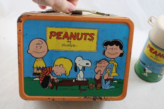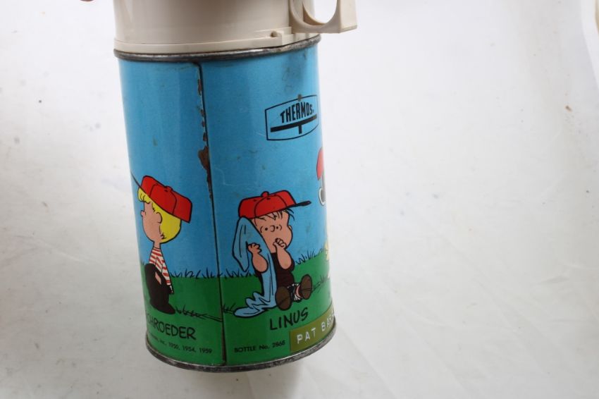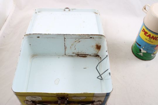 1959 Thermos Brand Peanuts Metal Lunchbox - with Thermos as pictured. Please ask questions and read terms & conditions before bidding.