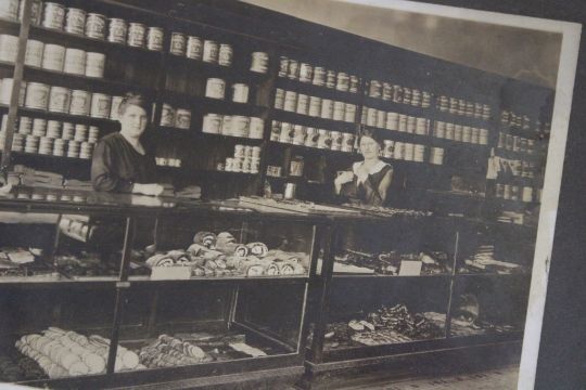 Framed Wolf Print & Antique Bakery Framed Photo - Photo measures 10 3/4" x 8 3/4" Framed and Framed Wolf print measures 17" x 13". Both as pictured. Please ask questions and read terms & conditions before bidding.