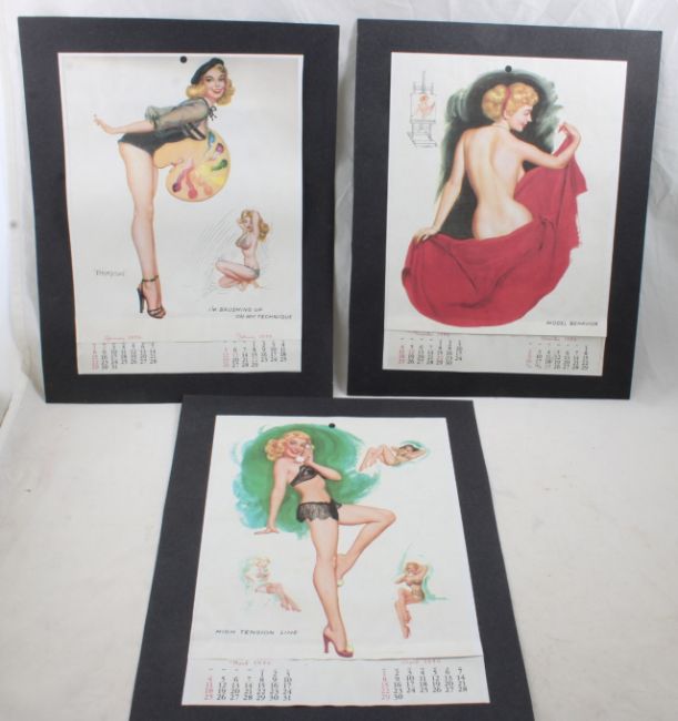Risque Calendar Month Pictures (3) 11" x 14" - As pictured. Please ask questions and read terms & conditions before bidding.
