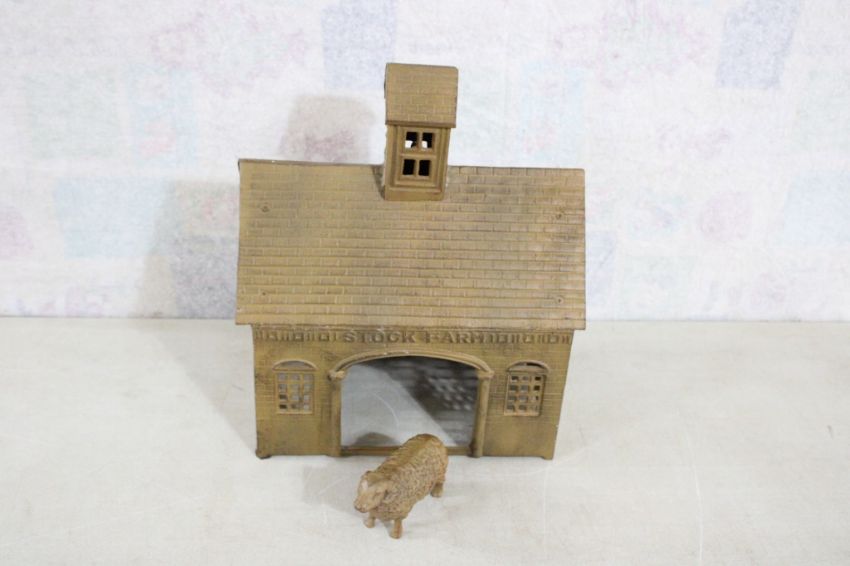 Cast Iron Stock Farm Barn & Sheep - Barn measures 8" x 13 1/8" x 15 1/2" as pictured. Please ask questions and read terms & conditions before bidding.