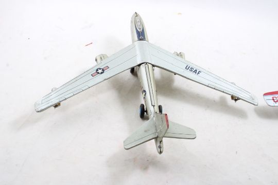 2 Tin Friction Airplanes U.S. Air Force & Cessna - U.S. Air Force 0043 Daiya Japan measures 11.5" long. Wings are detachable & is missing small tin part that holds them in place. Cessna #N453C measures 7 1/4" Long. Both as pictured. Please ask questions and read terms & conditions before bidding.