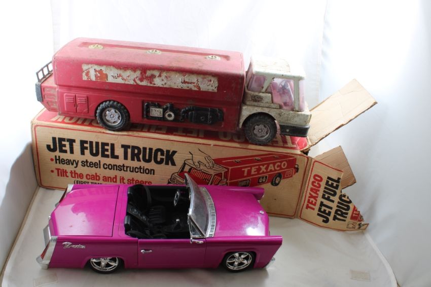 B&B Texaco Jet Fuel Truck & Bratz Doll Cadillac - B&B Texaco Jet Fuel Toy Truck with Original Box (box shows some wear) & Bratz Doll Cadillac. Both as pictured. Please ask questions and read terms & conditions before bidding.