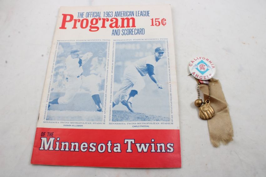 1963 Minnesota Twins Program/California Angels Pin - As pictured. Please ask questions and read terms & conditions before bidding.