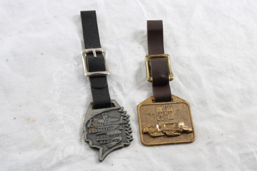 2 Advertising Watch Fobs - Hyster & Blackhawk Foundation Co. Geneseo, Illinois. As pictured. Please ask questions and read terms & conditions before bidding.