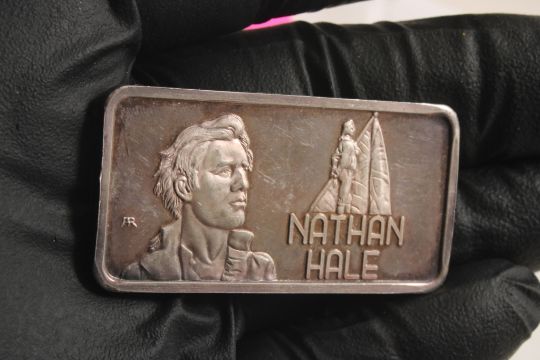 1 Oz .999 Silver Bar Nathan Hale - As pictured. Please ask questions and read terms & conditions before bidding.