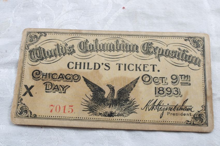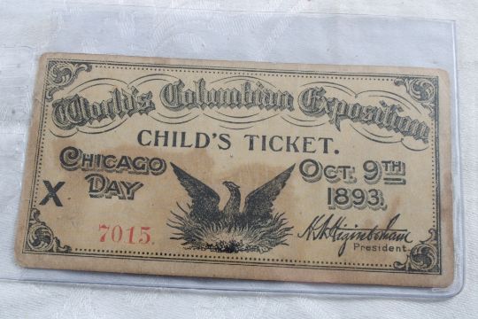 1893 World's Columbian Exposition Child's Ticket - October 9, 1893 Eagle Design. As pictured. Please ask questions and read terms & conditions before bidding.