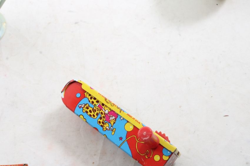 Noisemakers (4), Baby Cup - Frog Clicker marked Kirckhof , One marked U S Metal Toy Mfg. Co. and other 2 unmarked. All as pictured. Please ask questions and read terms & conditions before bidding.