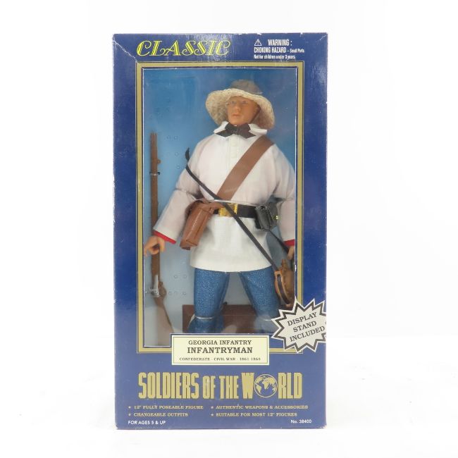 4 Soldiers Of The World Action Figures In Boxes -Georgia Infantry Infantrymen, Civil War Era, The Virginia Cavalry Officer Civil War Era, Supply Troops Quartermaster, Civil War Era & Commander Navy Civil War Era Boxes All Show Wear Please ask questions and read terms & conditions before bidding.