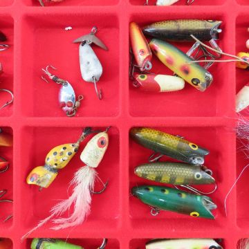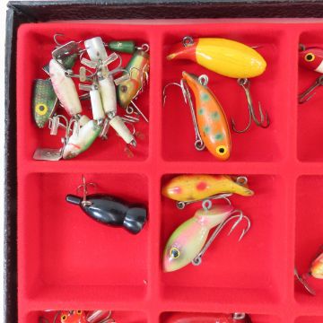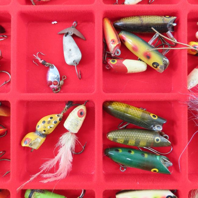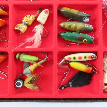 Hula Popper & Other Small Lures In Display - Please ask questions and read terms & conditions before bidding.