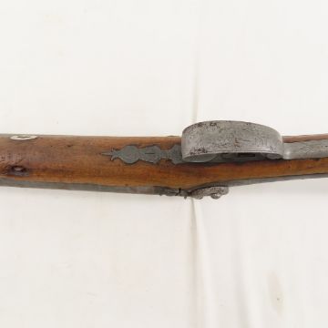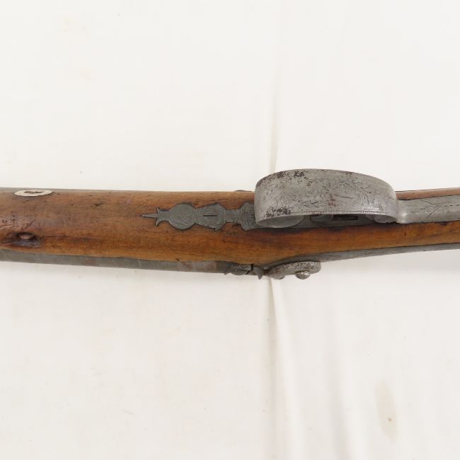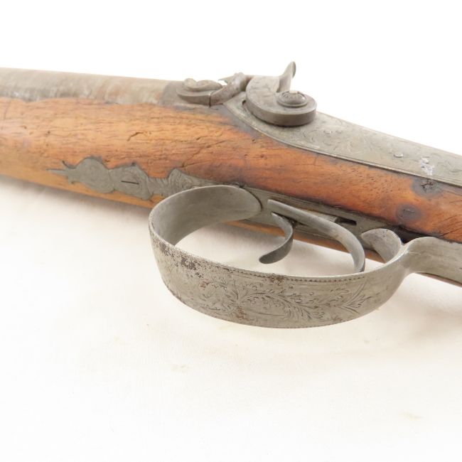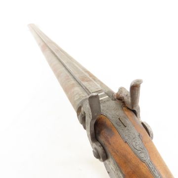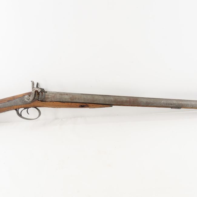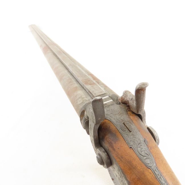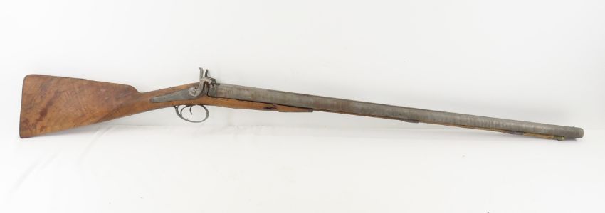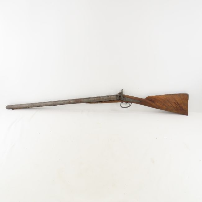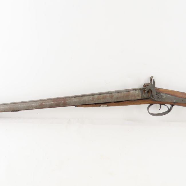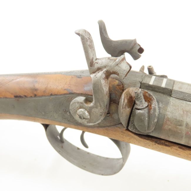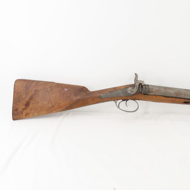James Gibbs, RedCliff St Bristol Percussion Rifle - wall hanger - poor condition throughout. 30" double barrel side by side signed on rib "James George Gibbs Redcliff St. Bristol", percussion cap, ram rod, scrollwork throughout. circa 1850's Antique. Please ask questions and read terms & conditions before bidding.