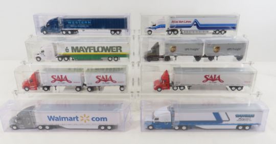 8 Kenworth Trucks N'Stuff Semi Tractor Trailer NIB - 2 are double trailers--UPS and Saia Please ask questions and read terms & condition before bidding.