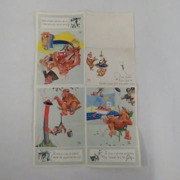 Collection Of Vintage Lawson Wood Monkey Cartoons - 22 Of The Small Color Images, 13 Large Color Images, Some Have Advertising On The Back For The Johnsonizer, Dated April 1936, 15 Of The Medium Brown These Are Dated On The Back 1937 From Minnesota, Mining & ManufacturingCompany. They Were Cut From A Card Or Something Of The Sort? There's One Fold-Out Poster Advertisement, 2 Small Calendar Advertisements. 4 Complete 3M Cards Dated 1941, 1 1936 Card That's Been Cut & One CutPostcard From 1936 Please ask questions and read terms & conditions before bidding.
