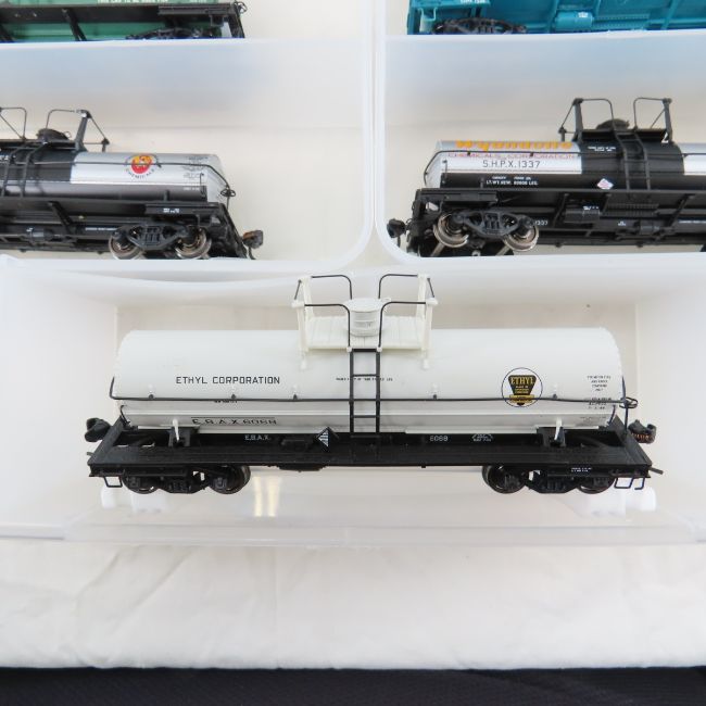 21 Broadway Ltd HO 6,000 Gallon Tank Cars w/Boxes - cars are in plastic case and may have broken or missing pieces, with matched boxes Please ask questions and read terms & conditions before bidding.