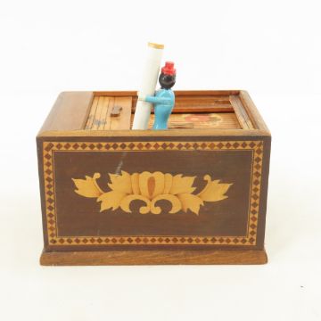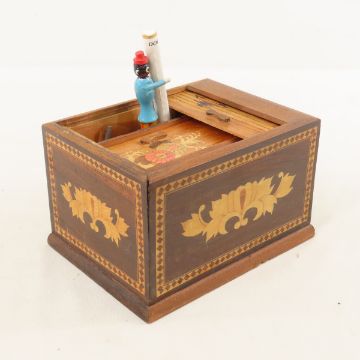 Black Americana wood Cigarette Dispenser - works - Please ask questions and read terms & conditions before bidding.