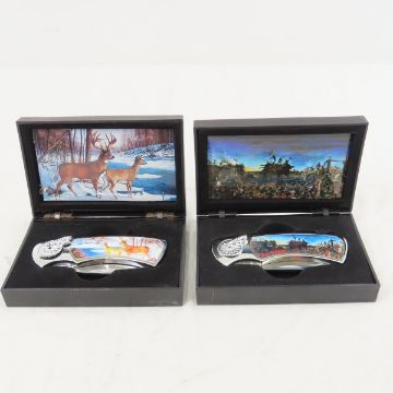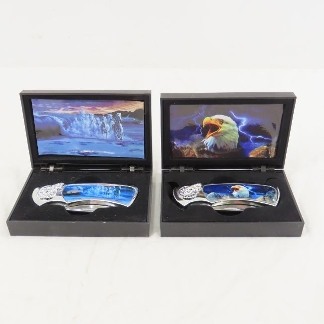 12 collector knives in cases - Please ask questions and read terms & conditions before bidding.