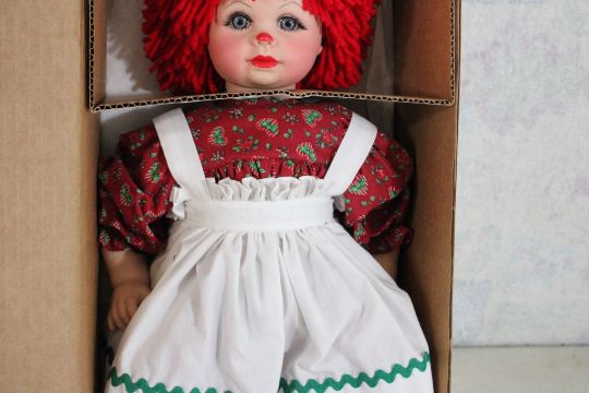Christmas Raggedy Jerri by Jerri Porcelain Doll - 20" Doll by Jerri as pictured in original box with COA Please ask questions and read terms & conditions before bidding.
