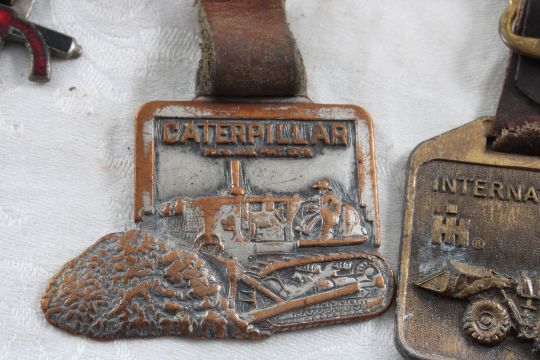 5 Advertising Watch Fobs - Thor Power Tools, Tractor Dynahoe, E-B Emerson-Brantingham Farm Machinery, Caterpillar Bibbs Cook Iowa, IH International Bulldozer all with leather straps as pictured. Please ask questions and read terms & conditions before bidding.