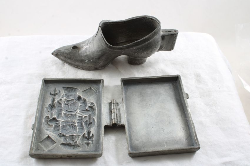 2 Ice Cream/Candy Molds Cast Metal/Pewter - Playing Card Diamonds & Victorian Shoe 6 1/2" long as pictured. Please ask questions and read terms & conditions before bidding.