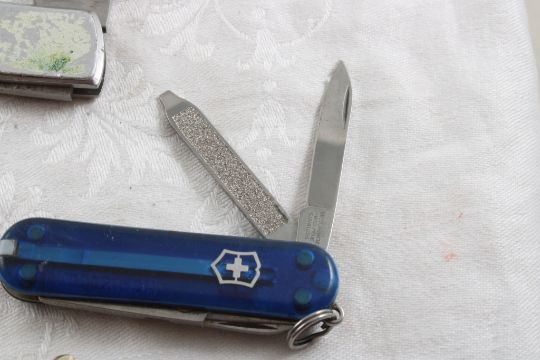 3 Folding Lock Blade Knives Guidesman, Victorinox - Frost (Lock does not work on the Frost), Plus Pipe Cleaner all as pictured. Please ask questions and read terms & conditions before bidding.