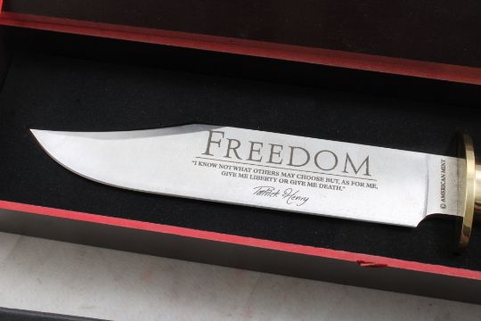 American Virtue Unused Bowie Knife in Box - As pictured. Please ask questions and read terms & conditions before bidding.