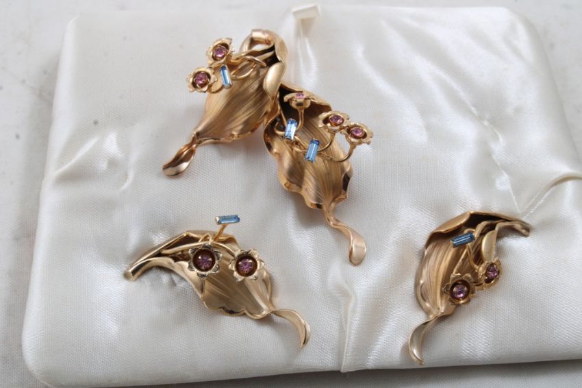 1940's Art Nouveau Demi-Parure Brooch/Earrings - As pictured. Please ask questions and read terms & conditions before bidding.