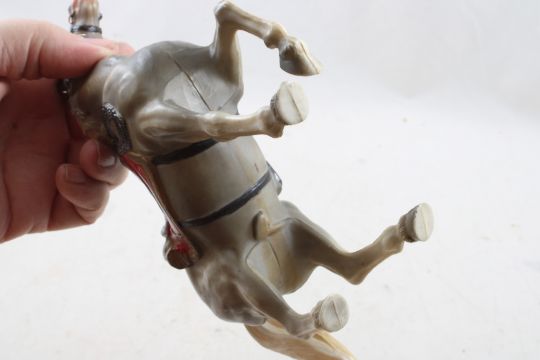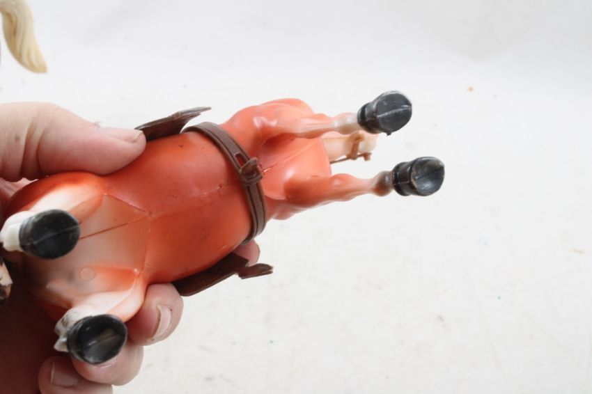 Plastic Horses Lot P Diamond Logo & More - Largest Horse is marked with a P inside a diamond and marked made in Hong Kong and measures 9" Tall with chain & Saddle, 2 other larger horses are marked Hong Kong and 3 smaller horses measure 2 3/4" tall and areunmarked. All as pictured. Please ask questions and read terms & conditions before bidding.