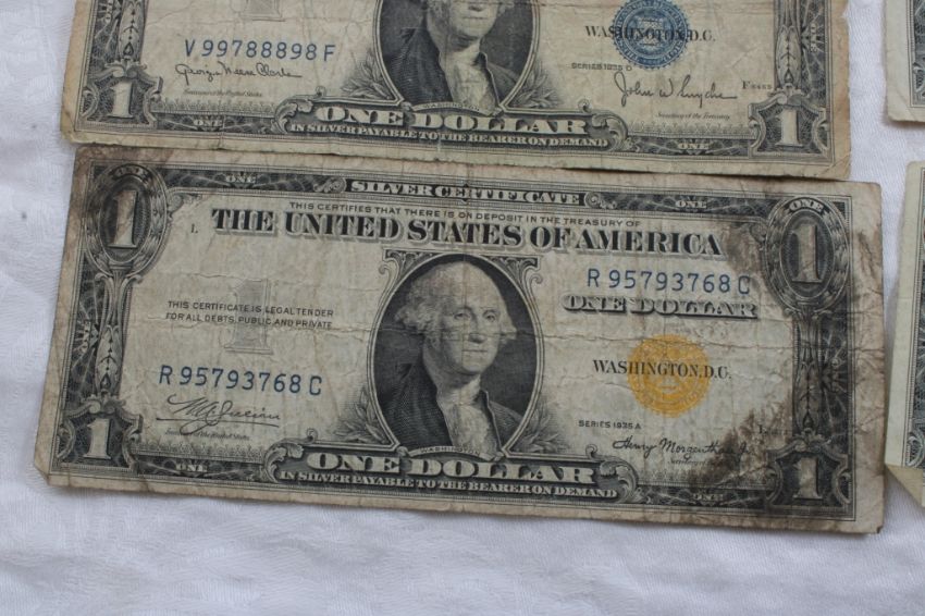 10 1935 $1 Silver Certificates 1 is Gold Seal - As pictured. Please ask questions and read terms & conditions before bidding.