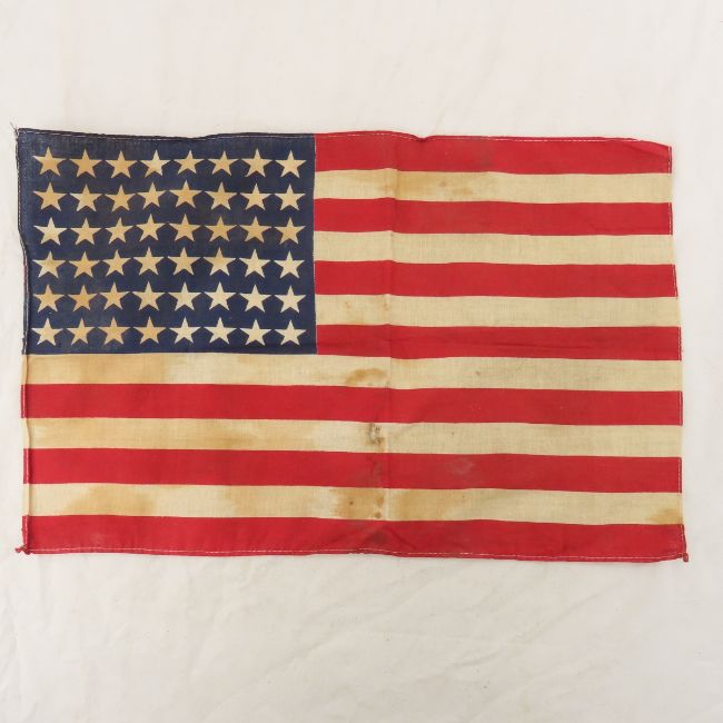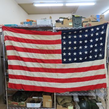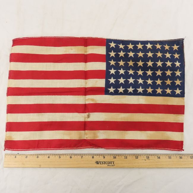 4 48 Star American Flags, Defiance, Grave Marker - Flags Measure 10" x 7", 17" x 11", Nyl-Glo 70" x 51", Defiance 4' x 6' & Military Grave Marker Please read terms & conitions and ask questions before bidding.