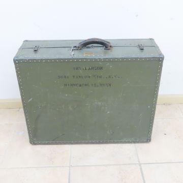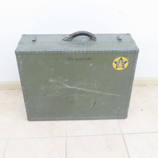 WWII Hartmann Seapack US Navy Suitcase & Key - Stenciled Irv larson, Minneapolis, MN - 25" x 20" x 8". Original Key included Please read terms & conitions and ask questions before bidding.